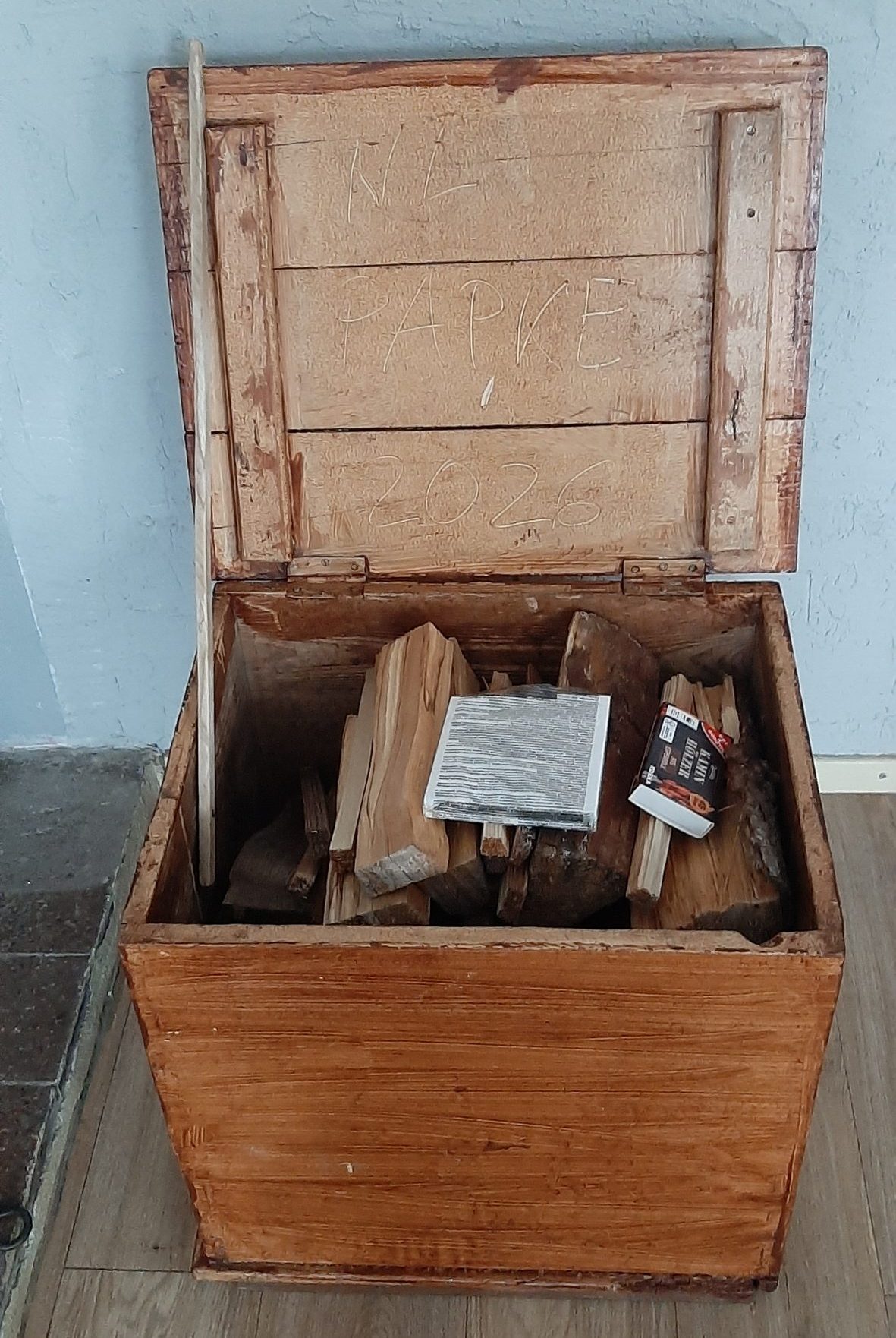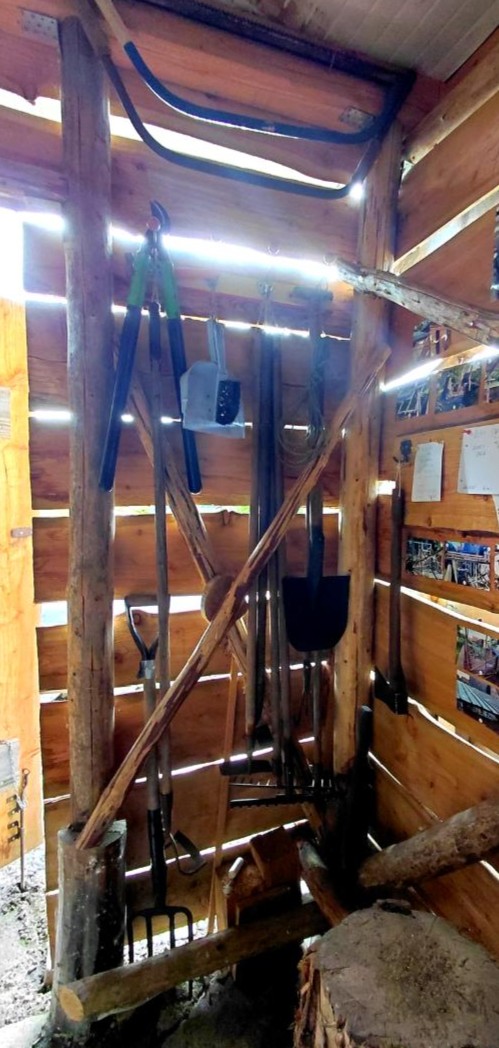 noch Werkzeuge für die Gartenarbeit vorbereitet und einen Brennholzkasten für Raum für mehr Ordnung beim Heizen vorbereitet.