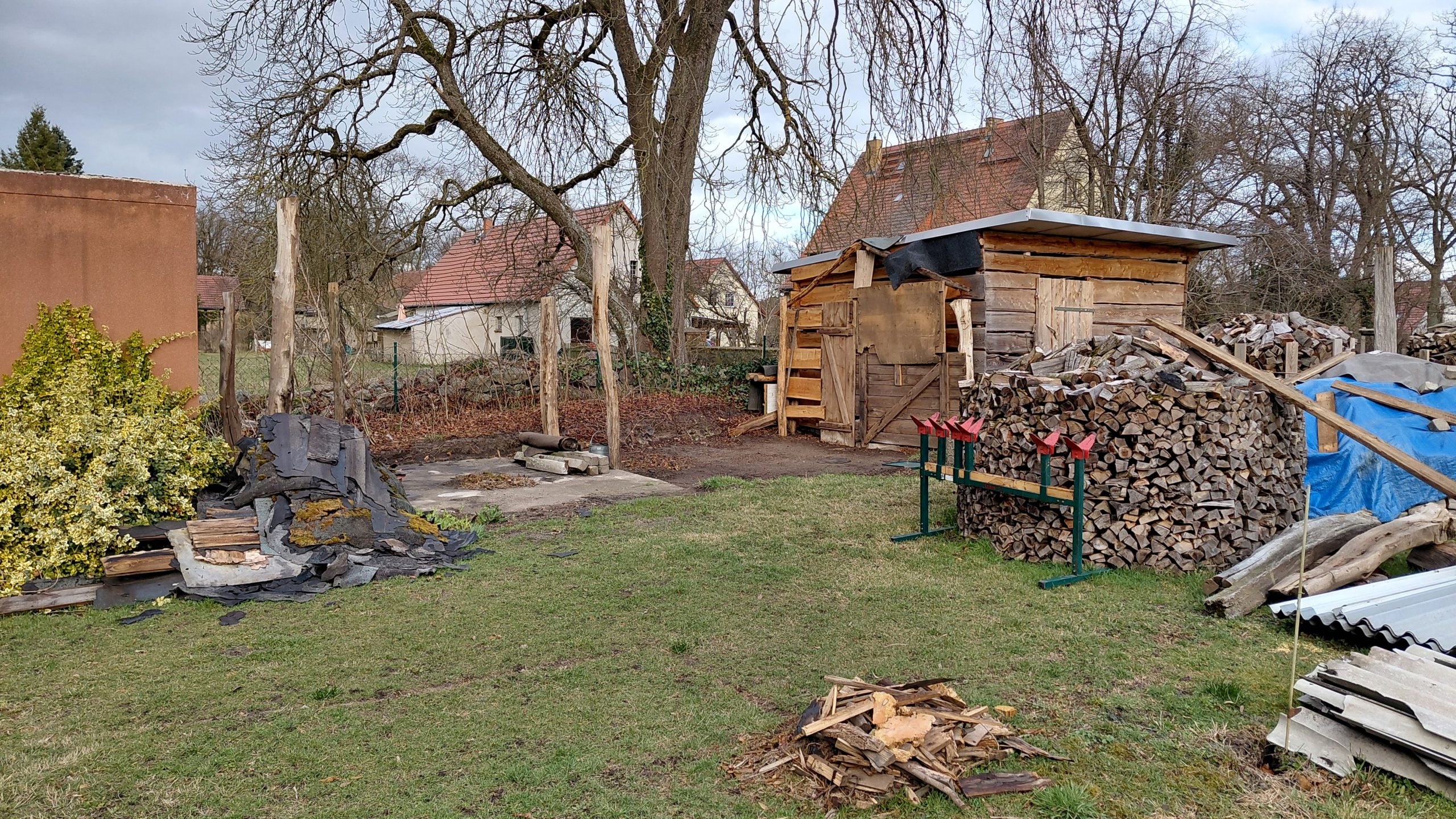 Klaus hat die kalte Winterzeit genutzt und fast im Alleingang den alten Schuppen zwischen Garage und neuem Schuppen im Garten der Heimatschule abgerissen. Viele viele Stunden verbrachte Klaus zunächst alleine im Garten und demontierte in aller Ruhe den alten Schuppern Stück-für-Stück.